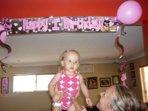 On Mia’s 1st birthday…our ‘red wall’ is our celebration wall we decorate for all special occasions!