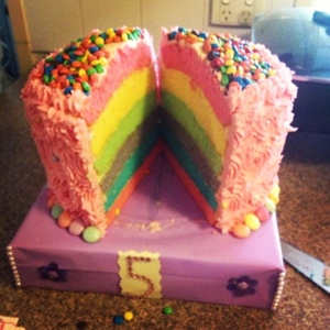 It’s been two months since I baked or decorated a cake or cupcake. We’ve been through some very tough and sad times of late with the passing of my nana and other family tragedies. But this week we’ve spent celebrating my daughter’s 5th birthday!!! Over the past couple of weeks I’ve done a batch of cupcakes for Sienna and her class, a cupcake masterpiece for her birthday party and my very first rainbow cake! All were loved by my daughter and it was great to get back into doing something that I love!