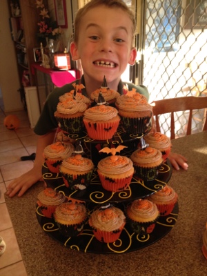 In the past Kane and I have just taken our kids and my nephews trick or treating, but this year I cooked dinner for the family and we all celebrated the night together! It was lovely. It was a great excuse to also make Halloween cupcakes and experiment with my icing…which I might add I finally can make icing that does what I want it to do – for decorating purposes that is (thank you Michelle Shaw)!