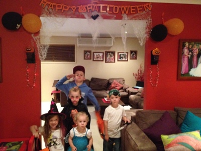 Like every celebration we embraced it with plenty of decorations and cake! This year Easter was at our house for the first time! The kids had a ball hunting for eggs, playing on their jumping castle with their cousins and I made my first Easter cake:) Halloween was also a hit this year! I made dinner and dessert for everyone to enjoy, while the kids went trick or treating!