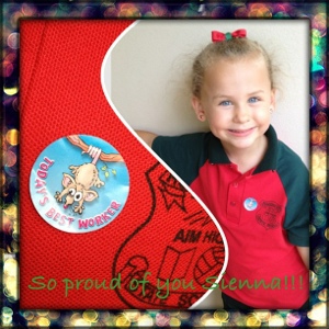Which leads me to my three children and how extremely proud of them we are! When Bailey came home this week with his student of the week certificate, for ‘always showing a fantastic attitude towards all aspects of his school work’, brought a tear to my eye! Not only as a teacher did this thrill me, but as his mum and knowing I played a big role in this makes me feel like the HARD work I’ve put into my boy (who has been extremely difficult) is paying off! Seeing my prep daughter becoming confident with learning to read and write makes my heart melt…again I had something to do with that! Hearing my 2 year old say ‘thank you’ mummy when I give her something and watching her function in our house like a mini adult – knowing that the back door needs to be closed before we go out and the tv needs to be turned off, without being told to, puts the hugest smile on my face!