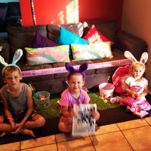 Easter Sunday started with its usual tradition of the kid’s Easter egg hunt. Usually we have to race off somewhere for breakfast, but this year we didn’t need to so it was so nice to potter all morning with the kids as we didn’t have to be anywhere until lunch time. On our way to my sister’s for lunch, we stopped in and saw nana and grandad. The rest of the day was spent eating, laughing and playing backyard sports with the kids! Another quiet but fun Easter:)