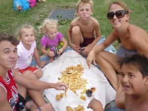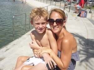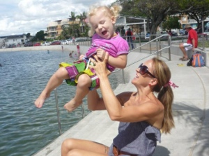 During the day I went down to Wynnum and had morning tea and fish and chips for lunch. Mum came with us as well as my two nephews. The kids had a ball kicking the footy around, playing on the playground and swimming! It was a bit windy but the sun was shining – it was glorious!