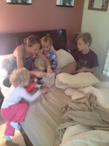 Then yesterday I was treated like a queen – breakfast in bed, I stayed in bed until 9am reading books with the kids and playing games on the iPad. We had a beautiful visit to our local playground and we’re caught in pouring rain on the way home…2 adults running with three kids on bikes must have looked pretty funny lol! The day was topped off by a beautiful dinner cooked by Kane…and he even did the dishes:)