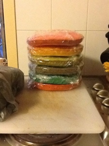 It was nice to get back into something that I LoVe to do though. Sienna loves rainbows so this year’s birthday theme for her has been rainbow colours with purple as the predominant colour. I’ve always wanted to try a 6 layer rainbow cake and when I showed it to Sienna, she was so excited to be getting that as her birthday cake. This is how it turned out….