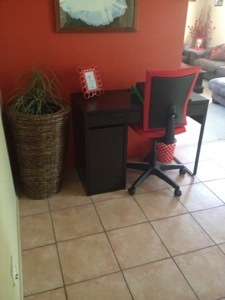 I’ve kept my red and chocolate-brown decor in this room. My plan for the future in this room is a new corner lounge and carpet. We are just waiting for Mia to grow a little older:)